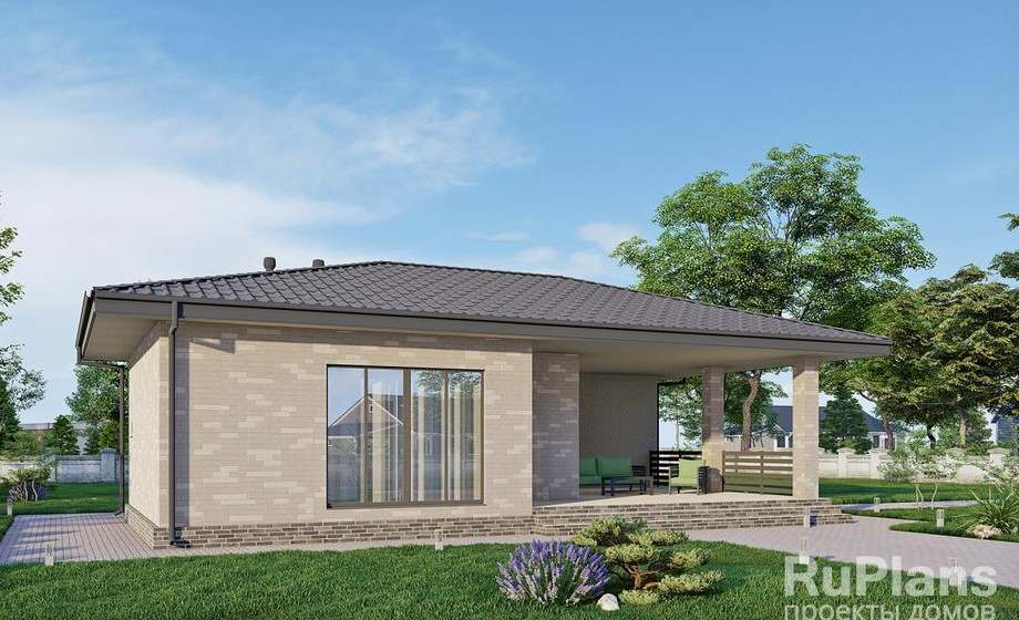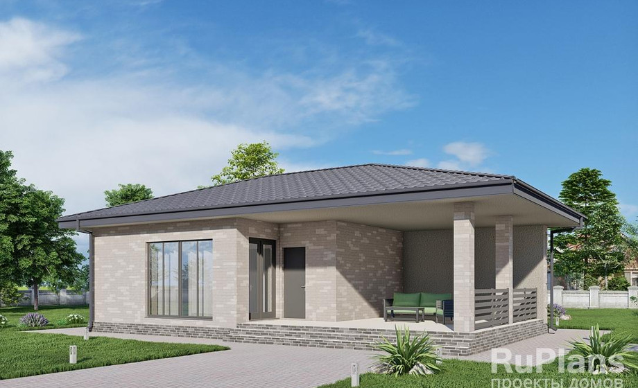 - Д-74. Баня с террасой 7,4 x 13,5 метров.
