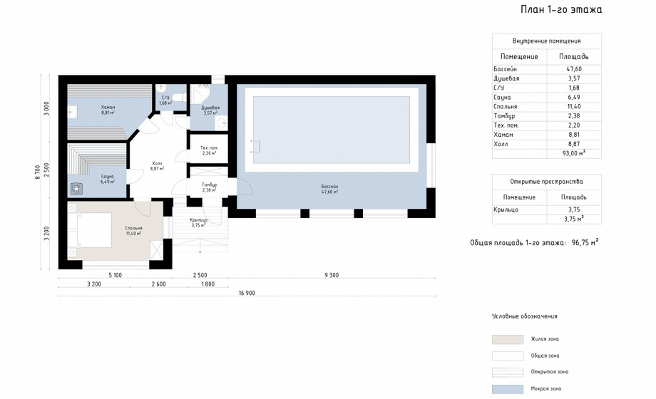В стоимость не включена чаша бассейна — по согласованию чаша бассейна из монолитного железобетона или композитная чаша бассейна.