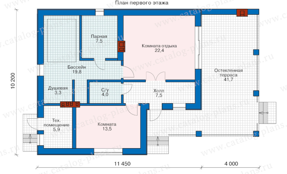 - СПА комплекс с бассейном и террасой 11.45x10.2 метров