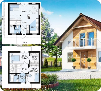 НОВИНКА Одноэтажный дом с террасой 7x9 метров