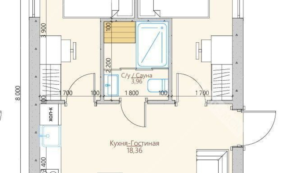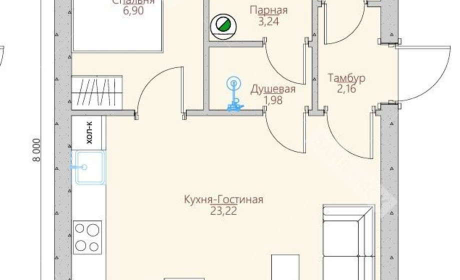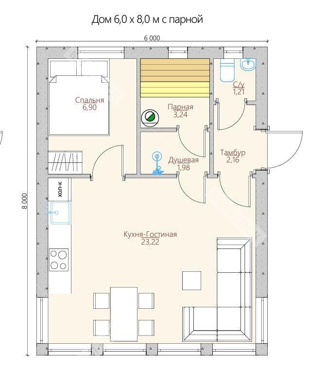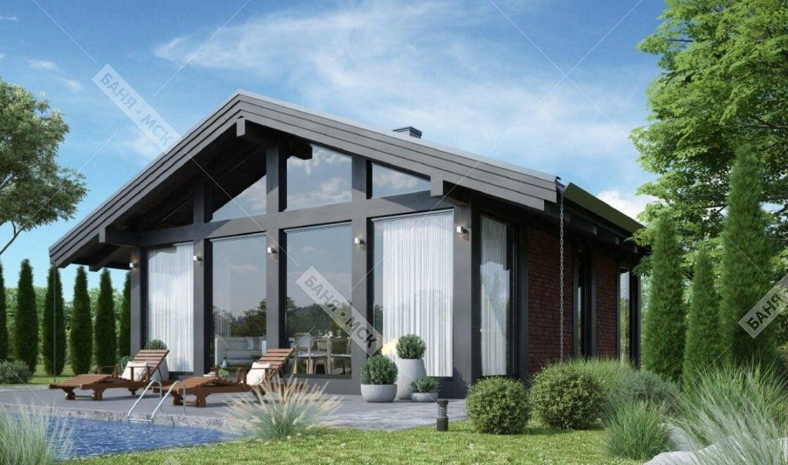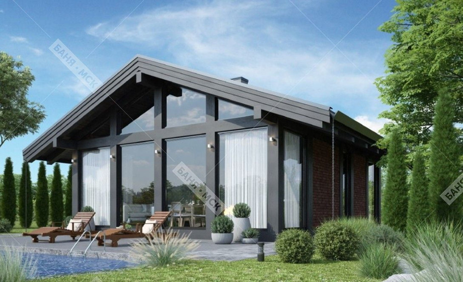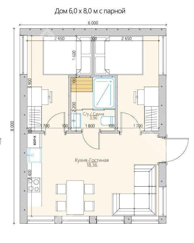 - НОВИНКА Проект р-55, банный комплекс 6X8 метров, 1 спальня