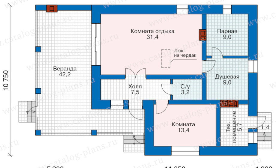 - Р-64. Банный комплекс с террасой 11.85x10.75 метров