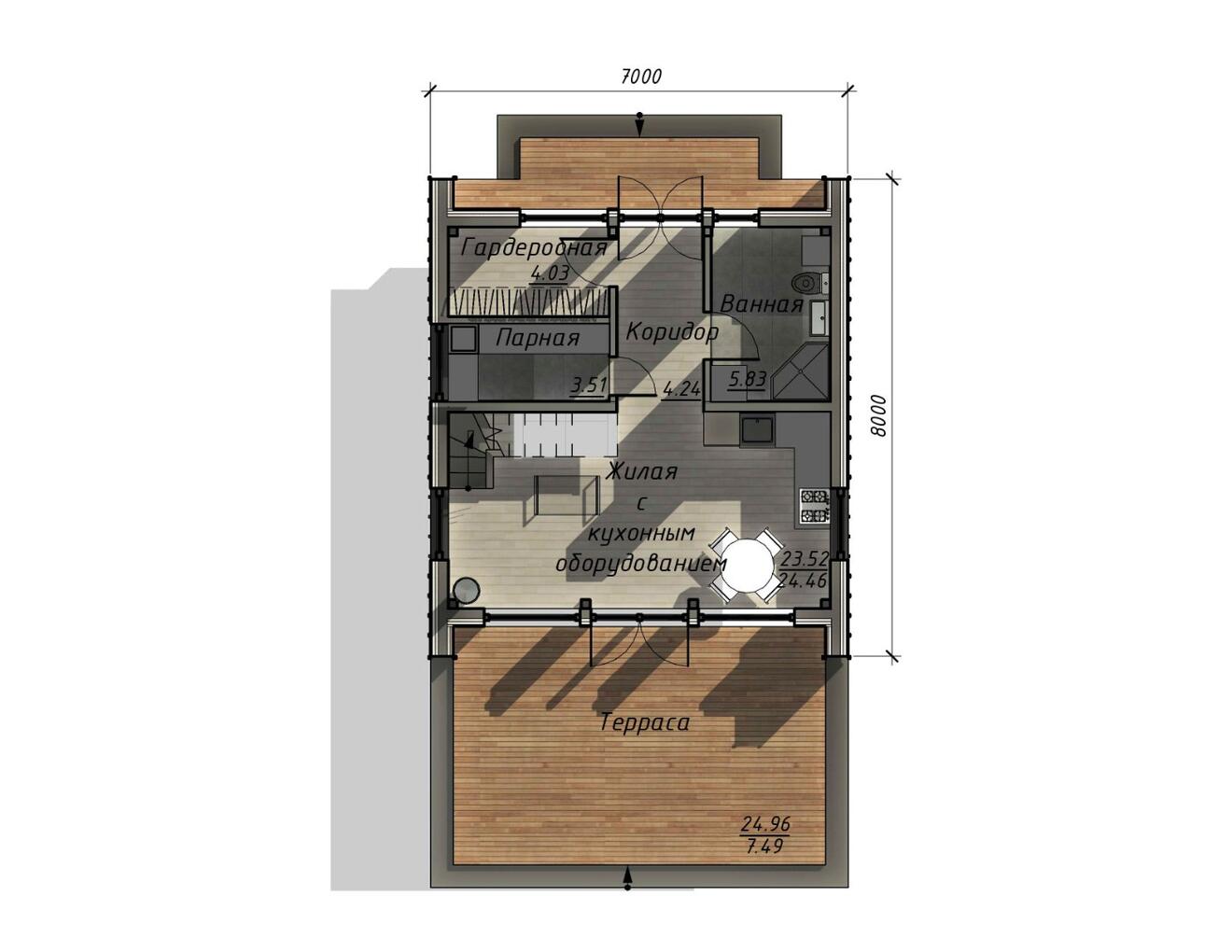 - БАРНХАУС С Отделкой и сауной ВЛ-74. 7х8 метров.