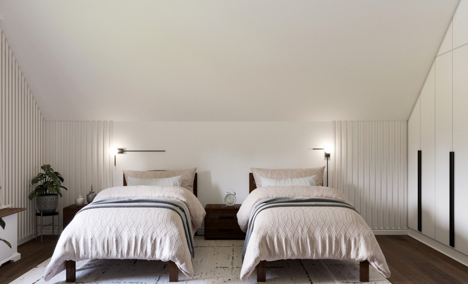 Гараж примыкает к дому, по соседству расположена мини котельная. Все жизнеобеспечивающие системы находятся вне жилой зоны. На первом этаже гостевая комната всегда доступна для компании друзей. Большая кухня и гостиная разместит всех желающих совместить приготовление пищи с общением. Просторный коридор после тамбура примыкает к широкой лестнице, ступени которой ведут на мансардный этаж.