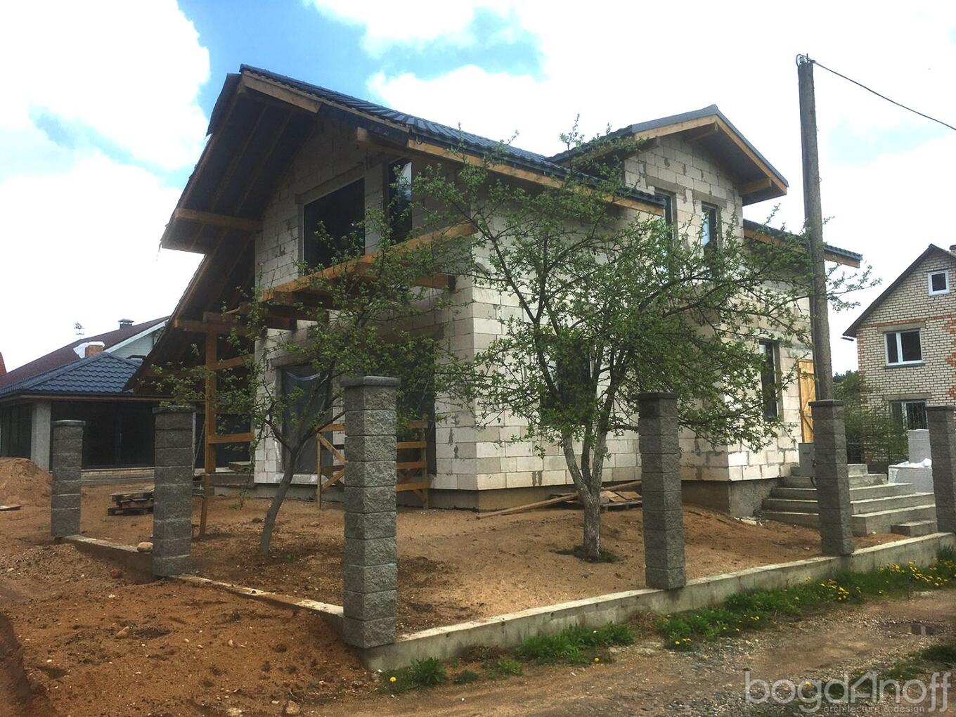 В стоимость строительства входит: АР (архитектурный проект) КР (фундамент, стены, кровля) фундамент (геология) , ввод и разводка канализации , ввод (гильзы) водопровода ,электричества, наружные стены из газосиликатного блока (300мм), бетонные черновые полы 100 мм внутренние перегородки (120мм) крыша метало- черепица толщина металла 0,5 мм , межэтажное перекрытие железобетонные плиты перекрытия.