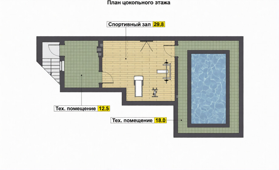 Спорт-зал, бассейн, сауна, комната отдыха: