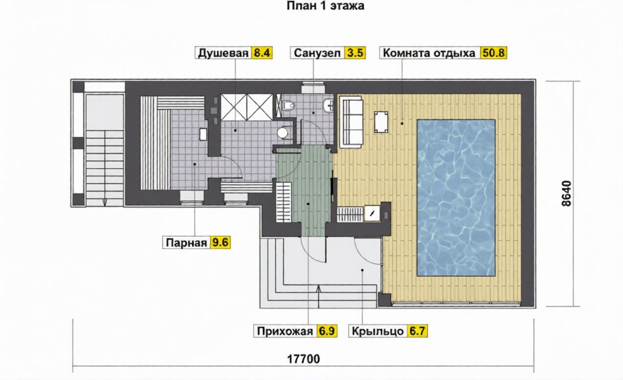 В стоимость не включена чаша бассейна — по согласованию чаша бассейна из монолитного железобетона или композитная чаша бассейна.