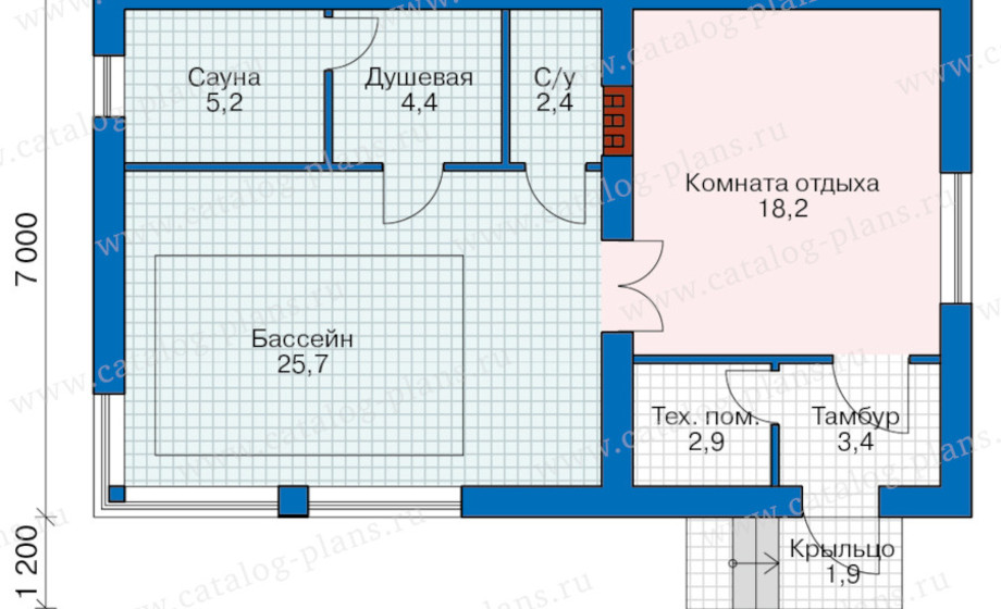бассейн, комната отдыха, сауна, сан-узел: