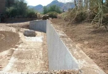 Вычисление параметров будущей стены , подготовка рабочей территории и ее разравнивание , рытье траншеи и при необходимости установка дренажа , вязка каркасов . и заливка бетоном.
